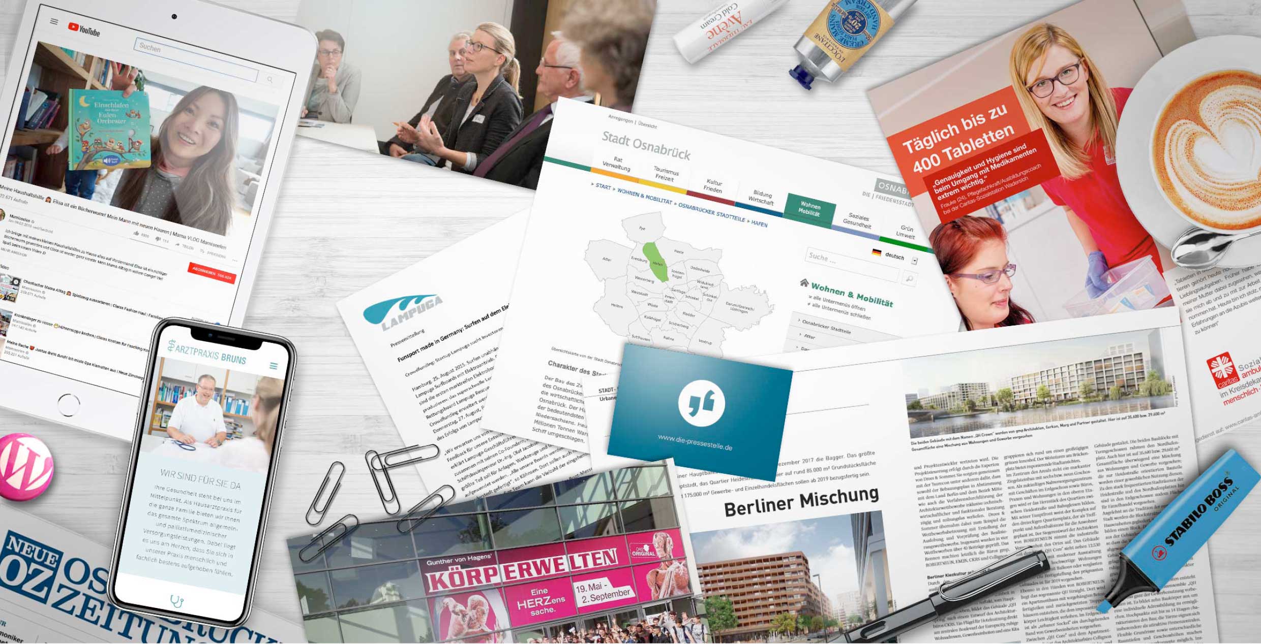 Als externe Pressestelle docke ich bei Ihnen an und begleite Sie auf Ihrem Weg in die Medien. Ich entwickle Kommunikations-Konzepte, schreibe Ihre Pressetexte, pflege den Kontakt zu Journalisten, plane Veranstaltungen und optimiere Ihren Web-Auftritt.
