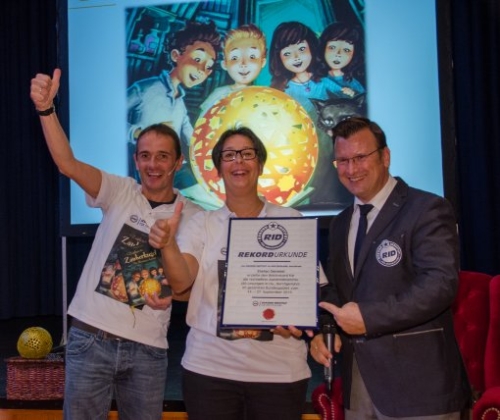 Nach exakt einer Stunde klickte die Stoppuhr von Eva Pfitzner, und Olaf Kuchenbecker vom Rekord-Institut für Deutschland (RID) sprach ihm die offizielle Bestätigung aus, dass er mit der „schnellsten Lesereise der Welt“ einen neuen Weltrekord aufgestellt hat.